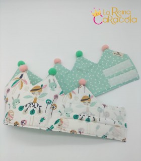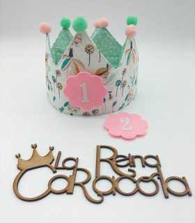 La Corona es adaptable, lleva el cierre de velcro largo en la parte trasera para que la puedas adaptar a la cabeza de tu peque. Te la enviamos con los números 1 y 2 intercambiables. Abierta mide unos 59 cm.